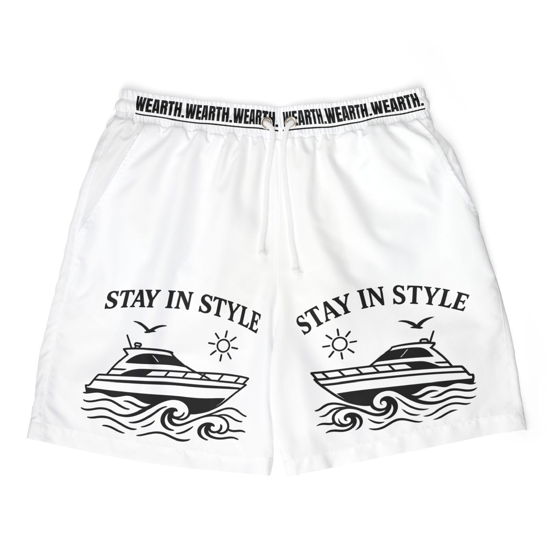 Elegancia sobre las olas. Este bañador presenta un diseño náutico limpio y sofisticado en negro, ideal para prendas de fondo claro. En el centro, un yate de líneas estilizadas navega entre olas dinámicas, acompañado por un sol brillante y una gaviota en vuelo. Sobre la escena, la frase “STAY IN STYLE” corona el diseño, transmitiendo una actitud relajada pero con clase.